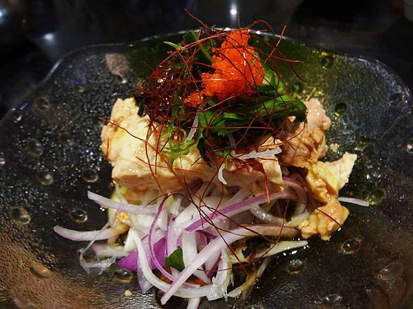 魚肝和風醋:這魚肝給的非常大方,而且完全沒有一丁點腥味,綿密細滑的口感入口即化後香氣還在口腔迴繞,洋蔥與和風醋拌一拌真是超級開胃呀,這配色與上方點綴都能感受到用心的態度。