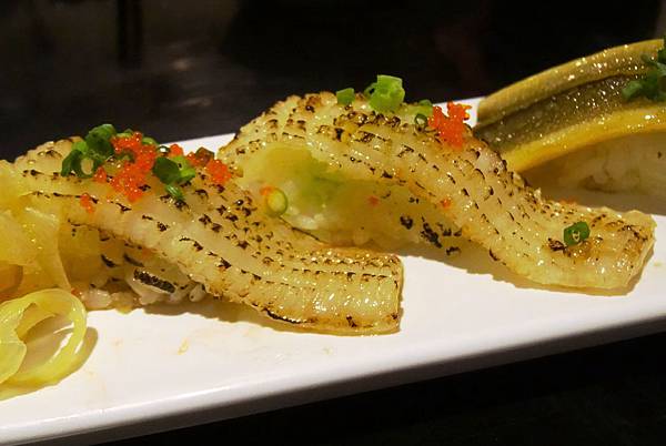 比目魚握壽司:好美,比目魚的油脂經過炙燒完全釋放出香氣,入口這美味與香氣連滑進食道都還不散,令人難忘的好滋味